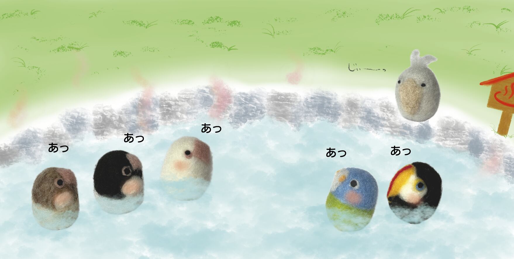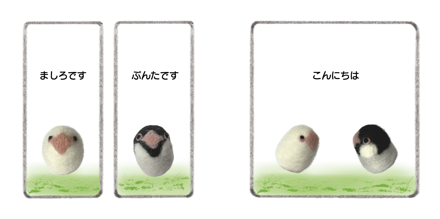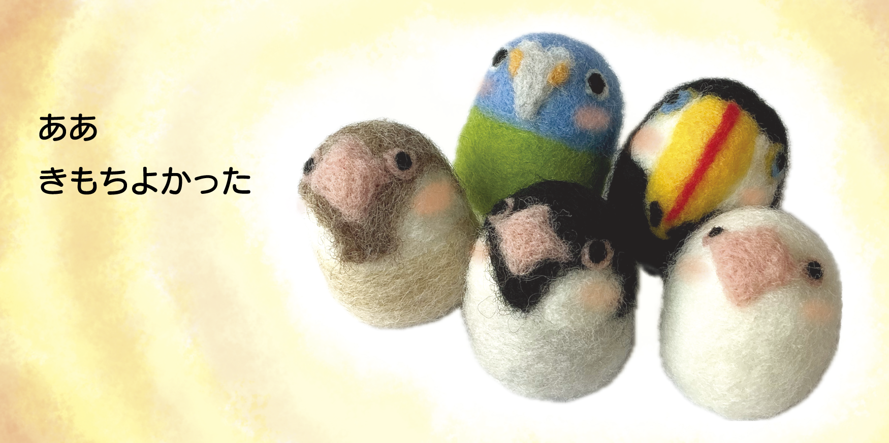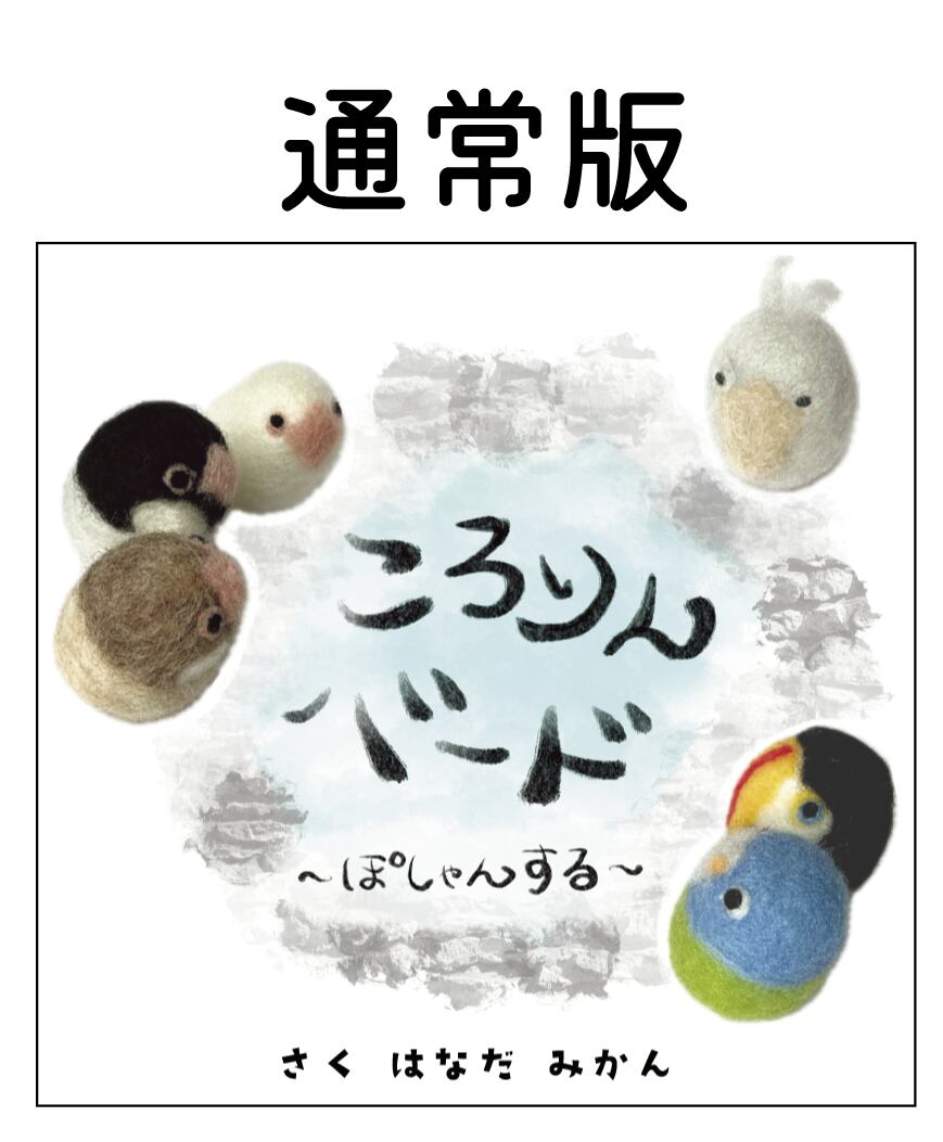 羊毛フェルトでできた作家オリジナル鳥キャラクター、ころりんバード。