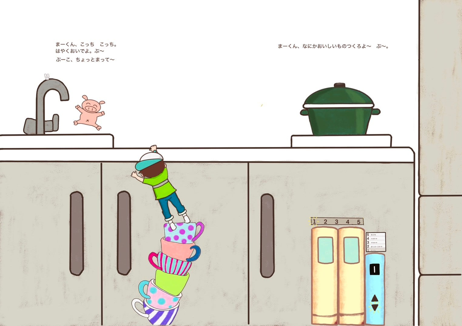 小さくなったまーくんとぶーこは、庭の小さな生き物たちと友達になったり、キッチンでおやつを作ったり・・・小さくなることで叶えられる夢をあれもこれも楽しみます。