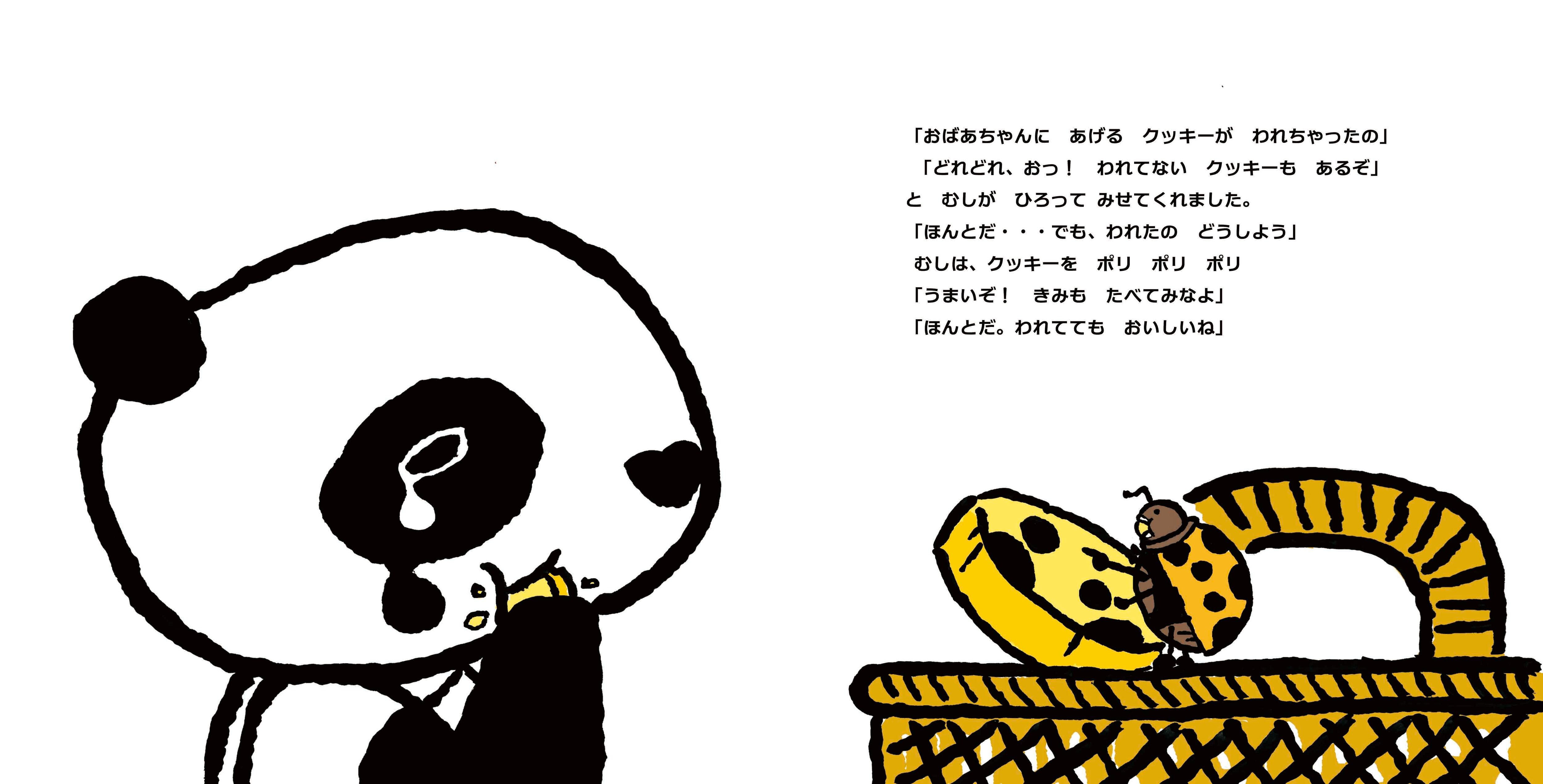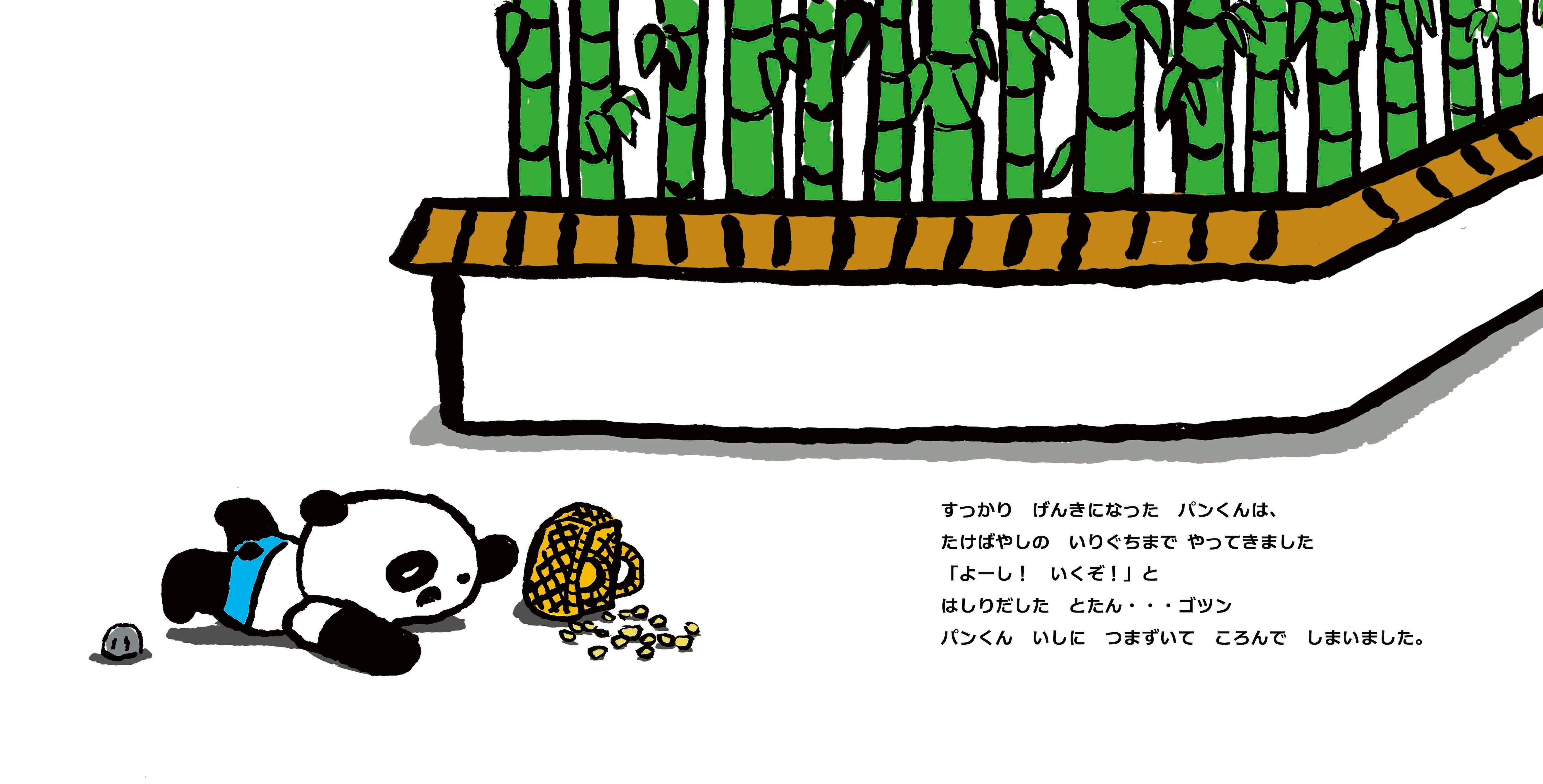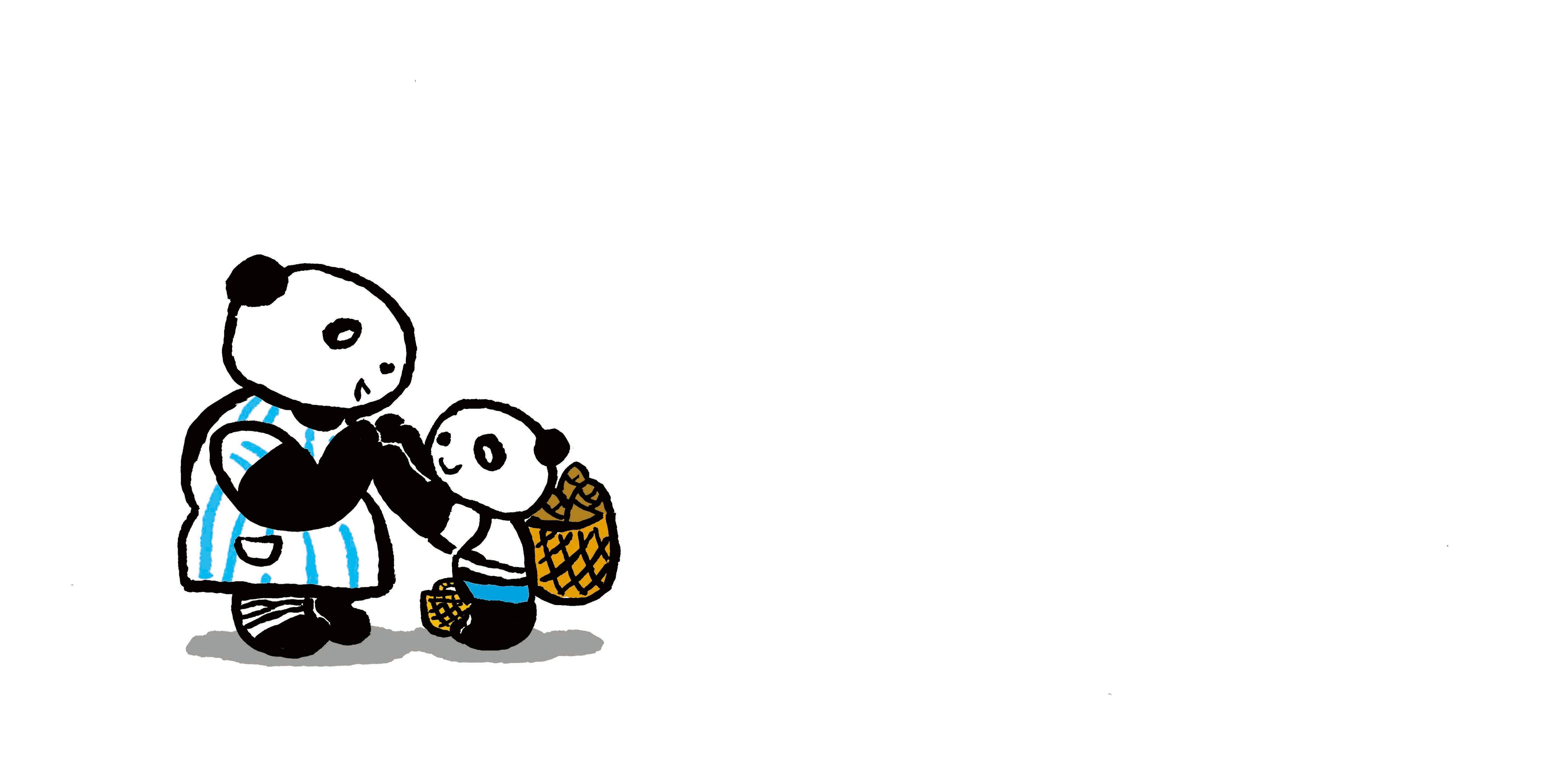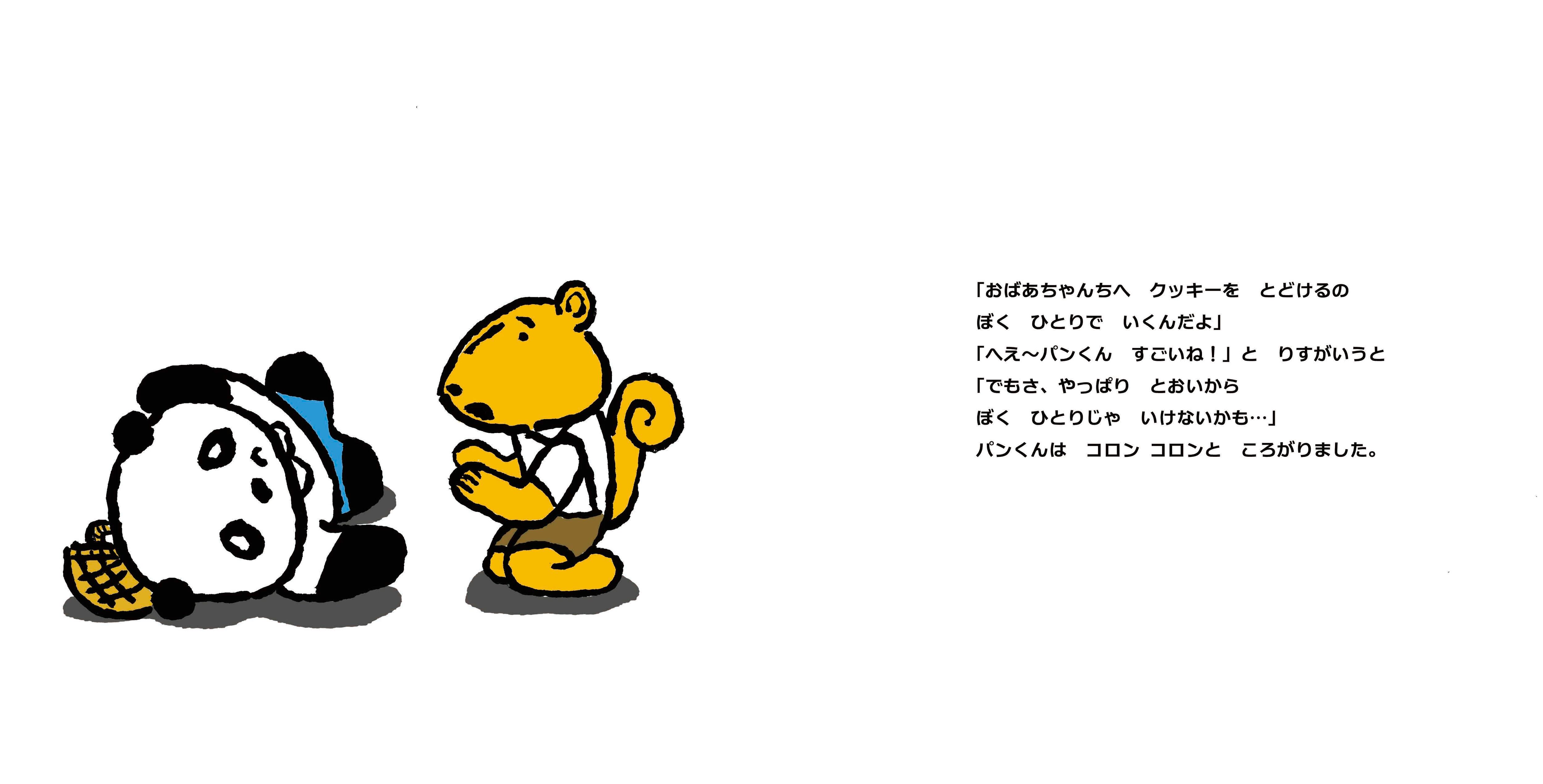 パンダのパンくんがクッキーをおばあちゃん家へお裾分しに初めて一人でお出かけします。