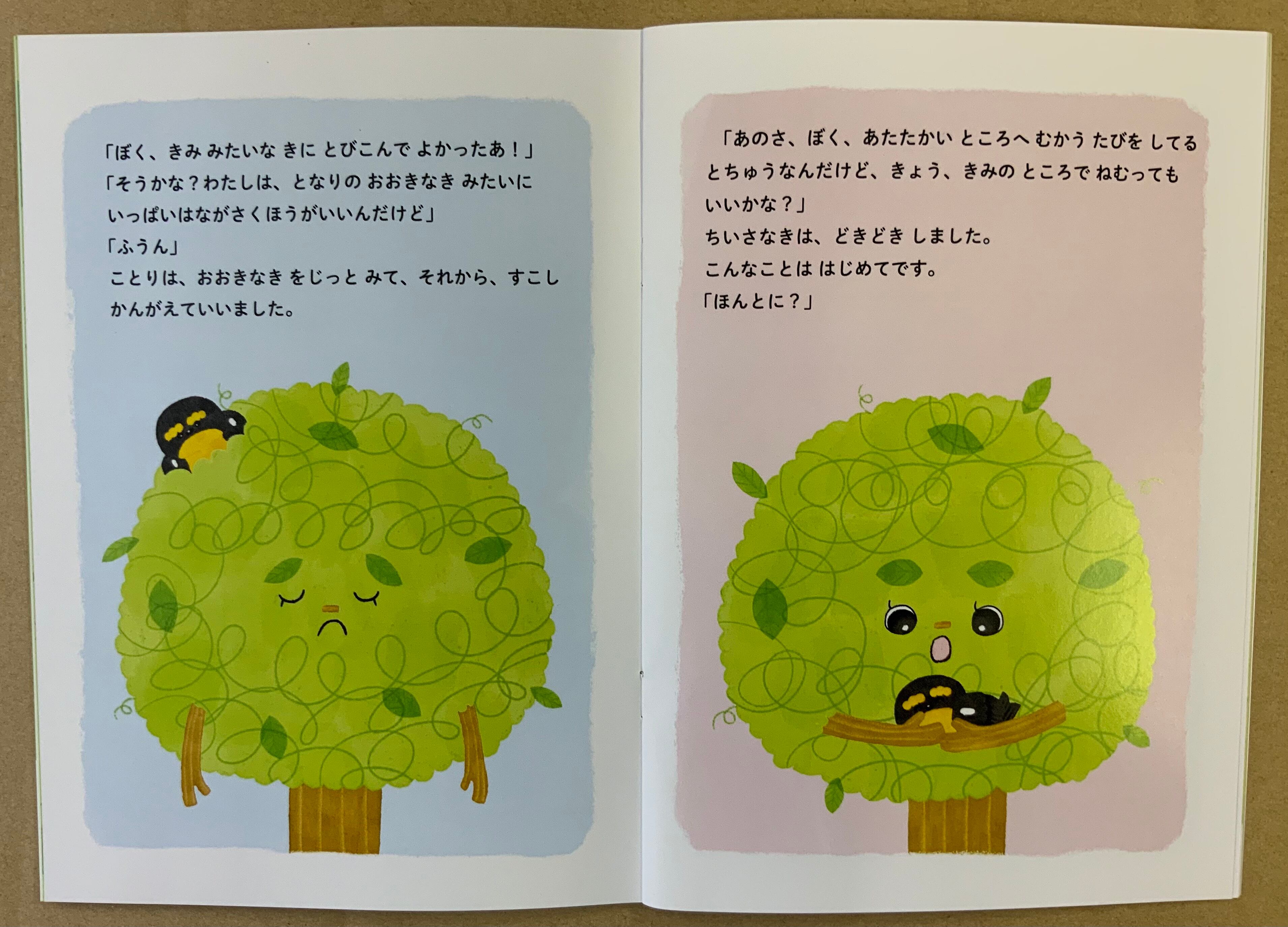鳥は言いました「きみみたいな 木に とびこんでよかった」